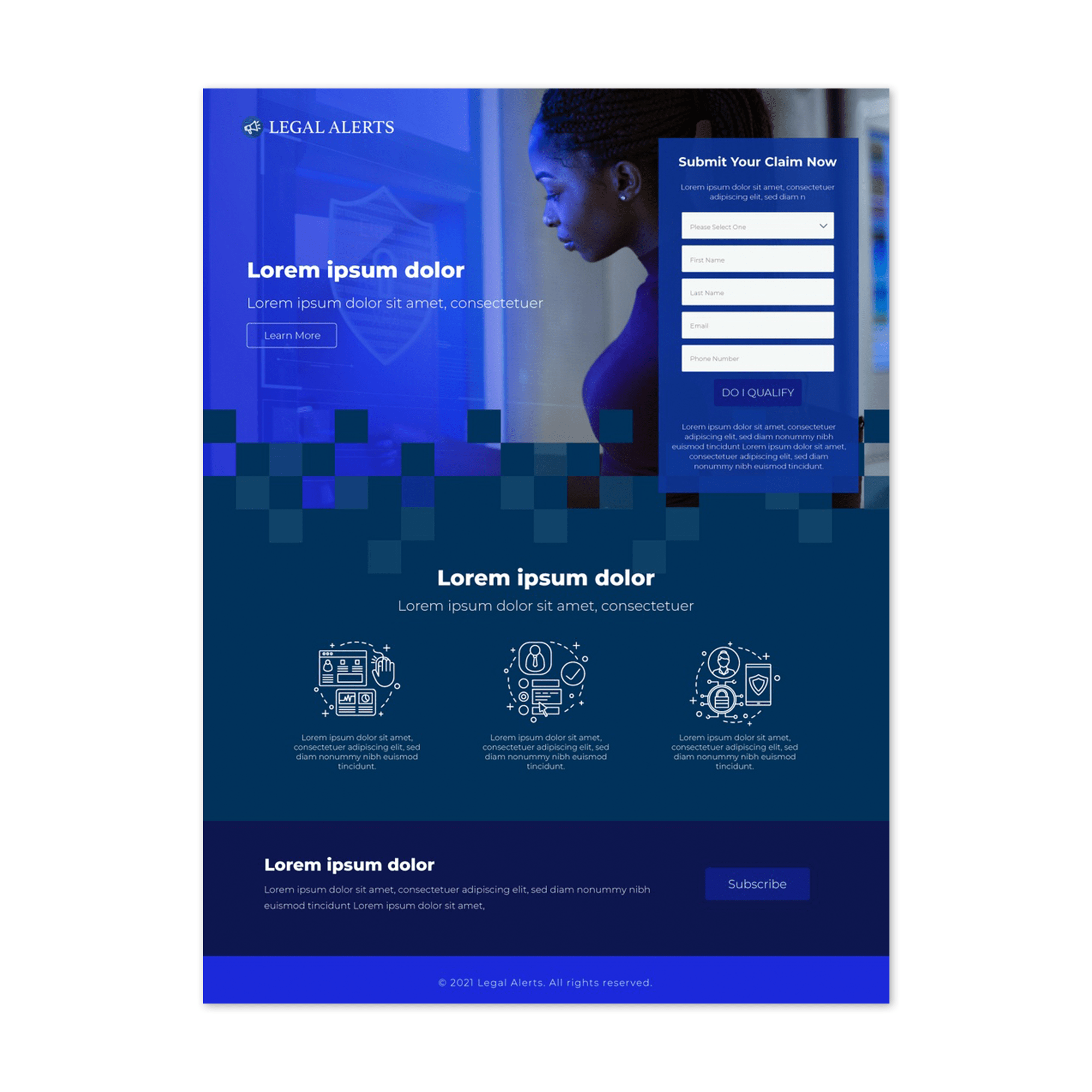 As I design Landing Pages, I’ve tried to inject some personality into the realm of law that sees very clunky marketing. By using more vibrant blues and illustrations, my goal was to help improve the conversion rate for this campaign by making the landing page more personable and trustworthy. As I’ve continued to design more pages, I’ve begun to look at what pages work and what people interact with more, and adjust to keep designing better converting and effective pages.